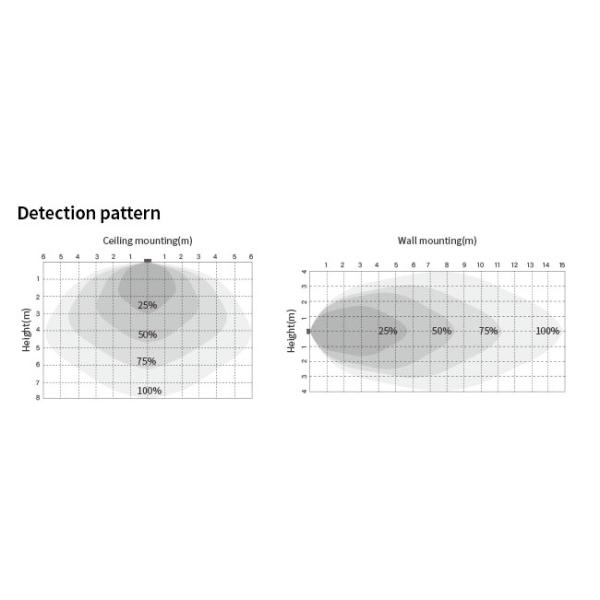 | 5.8GHz C-band microwave, tri-level dimming control. Input voltage: 12 - 24V DC. Input current: ≥25mA. *1~10V DC output signal. | Detection range up to 12m in diameter. Mounting height: 3~6m. Operation temperature: -20 °c ~ + 70 °c. RoHS compliant. |